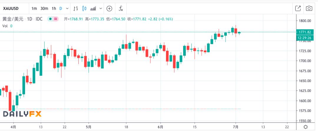 (注:黄金价格走势图,图片来自 Dailyfx)
