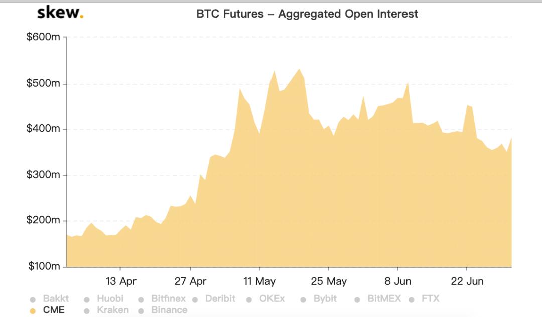 (注:CME比特币期货Q2持仓量变化,图片来自 Skew)