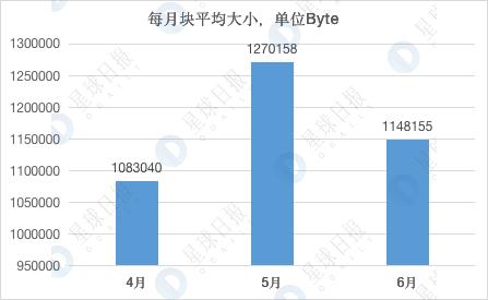 (注:每月块平均大小,数据来自 BTC.com,Odaily星球日报制图)
