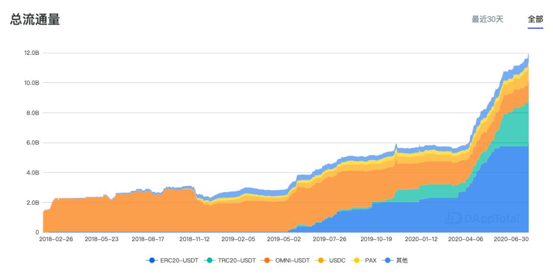 (稳定币总量变化,图片来自 Dapptotal.com)