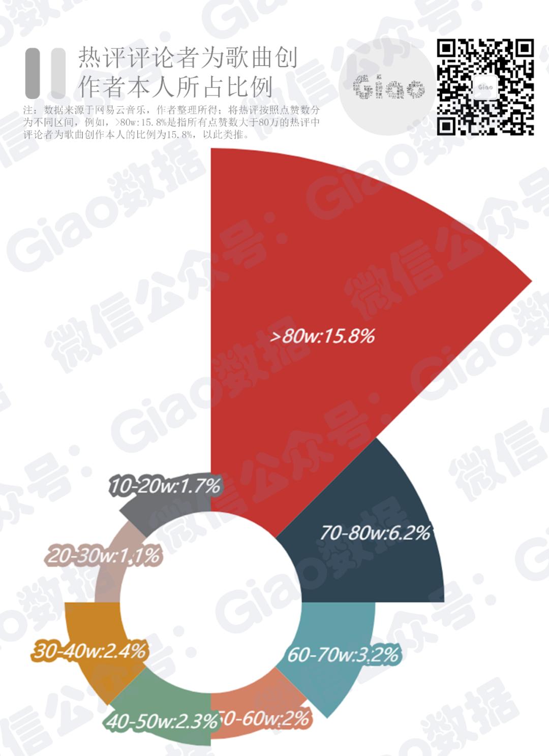 可以看到,在点赞数大于80w的热评中,有15.8%的热评评论者是歌曲创作者本人。