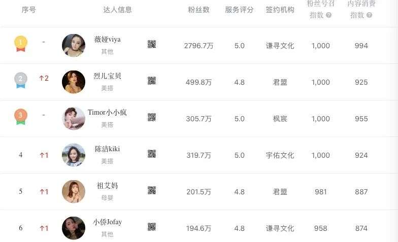 如涵培养不出第二个张大奕,美one是否能培养出第二个李佳琦?阿里V任务的机构榜中,美one位列第二,旗下还入驻了胡月明_demi、小悦的华丽生活两位大咖,但现在声量却算不上大。