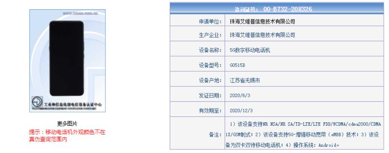 从工信部入网信息来看,格力首款5G手机型号为G0515D,申请单位是格力全资子公司珠海艾维普信息技术有限公司。