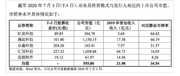 寒武纪64.39元/股的发行价,对应2019年营业收入的发行后市销率为58.03倍,高于上图5家可比公司平均静态市销率,但低于虹软科技和澜起科技的静态市销率,未来存在股价下跌给投资者带来损失的风险。