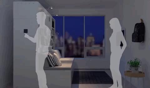 它们也尝试在人们的家庭生活中采用新技术,融入到宜家的产品之中,比如「无线」的智能照明系统Trådfri,用 app 就能开关灯;比如与 Sonos 合作,推出的带 Wi-Fi 扬声器的 Symfonisk 台灯和书架;比如和美国初创公司 Ori 合作,制造出一套机器人家具,它可以在大城市的小空间里反复「变形」适合人们站、坐、躺、工作、生活的各种需求。
