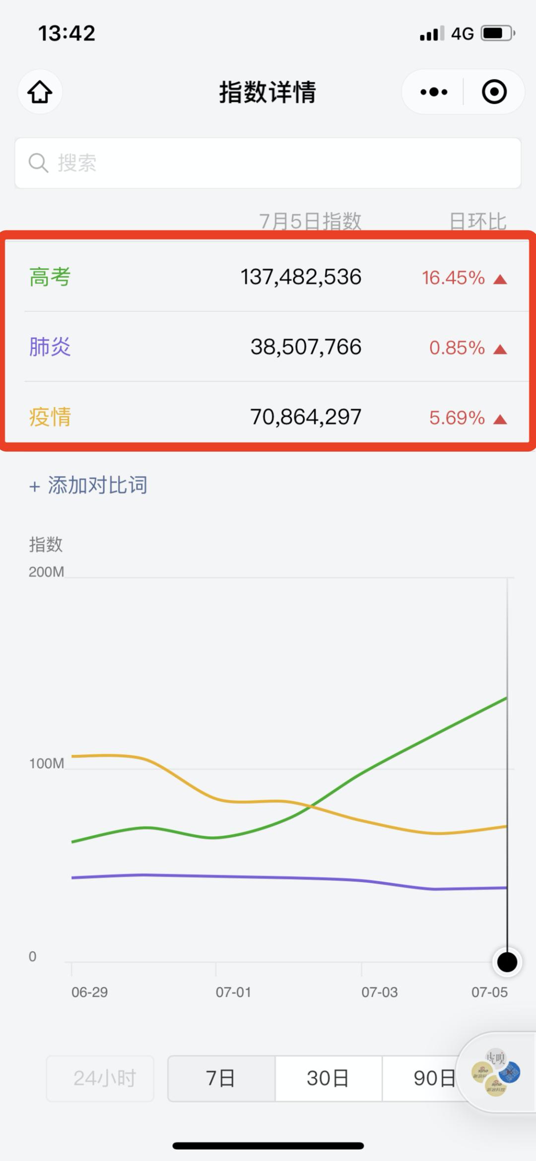 众所周知,微信指数是某个关键词在微信生态内的热度指标,通过微信指数功能,用户可以查看或对比制定字段7—90天内的在微信生态内的热度情况。