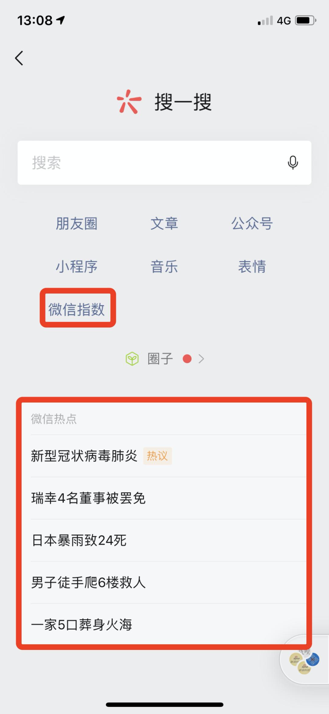 悄悄滴,微信指数登录了微信二级入口搜一搜的主页面。就这样,无声无息地占据了一个重要入口。