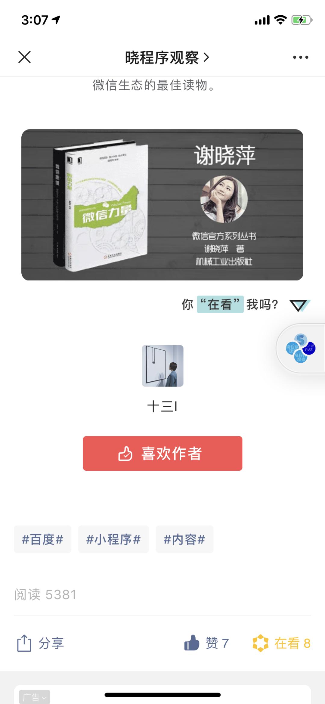 不久前,在微信团队和晓程序观察(yinghoo-tech)的一次交流中,微信团队透露,会继续优化智能排序功能。而影响这一功能最关键的指标,是常读用户。