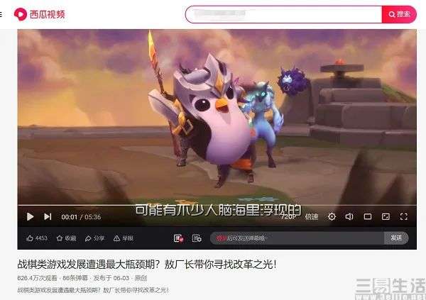 在入驻西瓜视频1年后,敖厂长已经有了超过200万的粉丝,这一增长速度不可谓不惊人,但其视频内容的播放量却并不稳定,经常出现仅有数万播放量的情况,而与之相对应的则是其在B站的播放量基本稳定在百万级别。更为重要是的是,可以看到即便是在播放量相似的情况下,西瓜视频上的评论与弹幕数量相比于B站足足少了一个量级。以敖厂长在西瓜视频上一条播放量为626.4万的视频为例,其仅有86条弹幕和448条评论,而在B站上一则播放量598万的视频,则有着3000条弹幕和15470条评论。