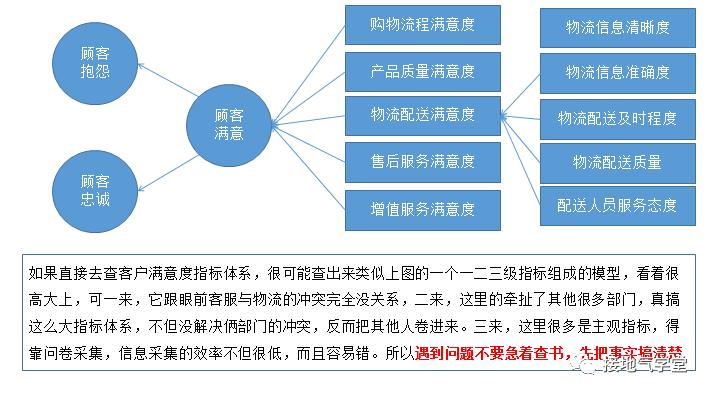 如果用问题解决思路,需要的分析就不1个建立客户满意度指标体系,而是3个相互配合的分析