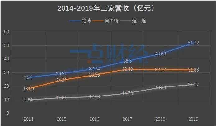 与业绩一路下滑的周黑鸭相比,它的竞争对手们却在快速增长,尤其是绝味食品,增长迅速。财报显示,近三年来,绝味的营收增速分别达到了17.59%、13.455、18.41%。