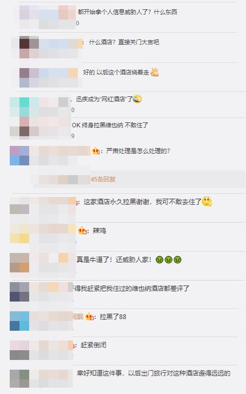 用入住信息来威胁住客删差评,让维也纳酒店集团被推到舆论浪尖,一些抵制维也纳的言论也在网上发酵。