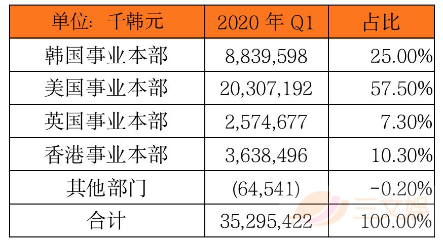 其次是来自韩国本土的收益,为5199.67万元(25%)。