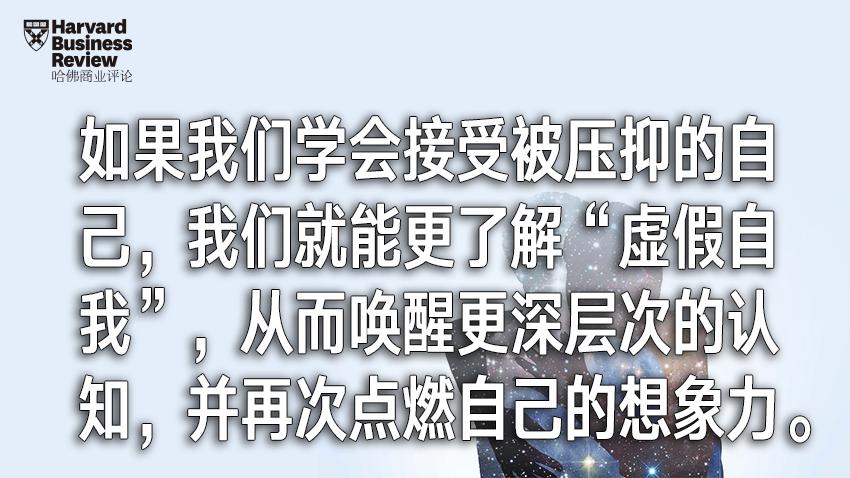 但是,“重新经历压抑的情绪”不应该被当作是纯粹消极的体验。尽管人们可能认为人格中的阴暗面代表着被压抑的生活,但是迟到的认同危机也包含着让内心重生的种子,也就是踏入人生新方向的动力。如果我们学会接受被压抑的自己,同时学会解读其中所包含的信息时,我们就能更了解“虚假自我”,从而唤醒更深层次的认知,并再次点燃自己的想象力。