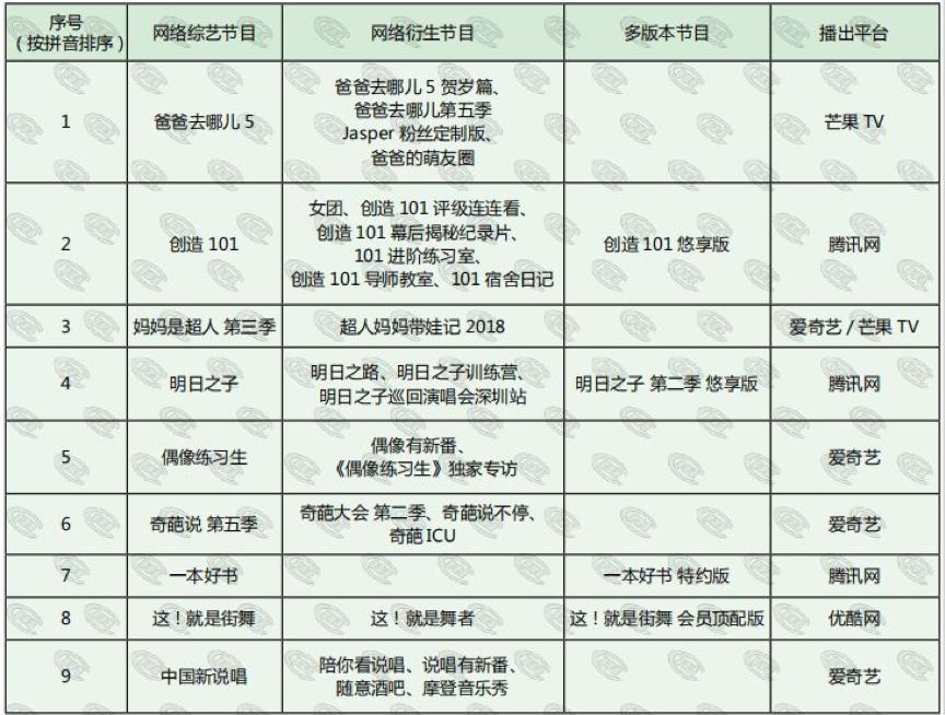 此外,衍生节目横向拓展。国家广电总局发布的《网络原创节目发展分析报告》显示:2018年,共上线385当网络综艺节目,其中多版本节目48档,衍生节目44档,多版本节目和衍生节目占比达24%。