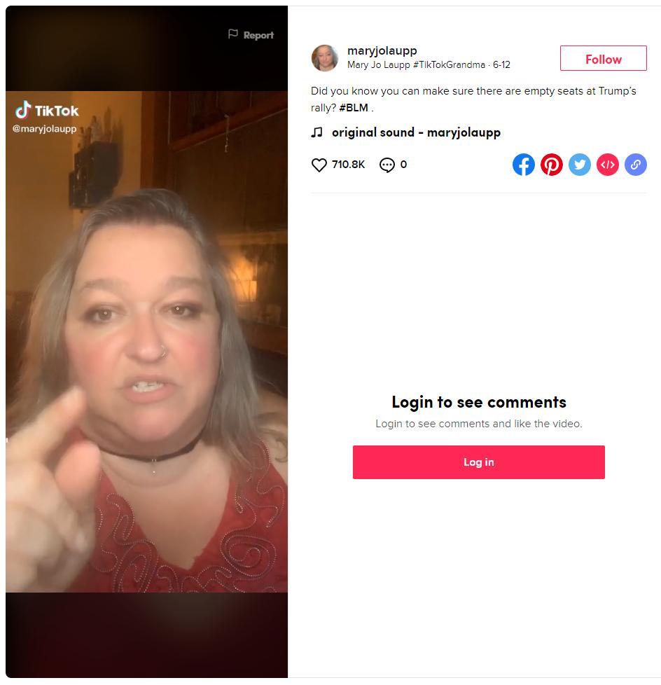 曾任美国首位同性恋总统候选人Pete Buttigieg的职员Mary Jo Laupp就在Tik Tok上发声反对特朗普。她声称,特朗普在俄亥俄州的竞选集会,是"黑人社区的耳光"。