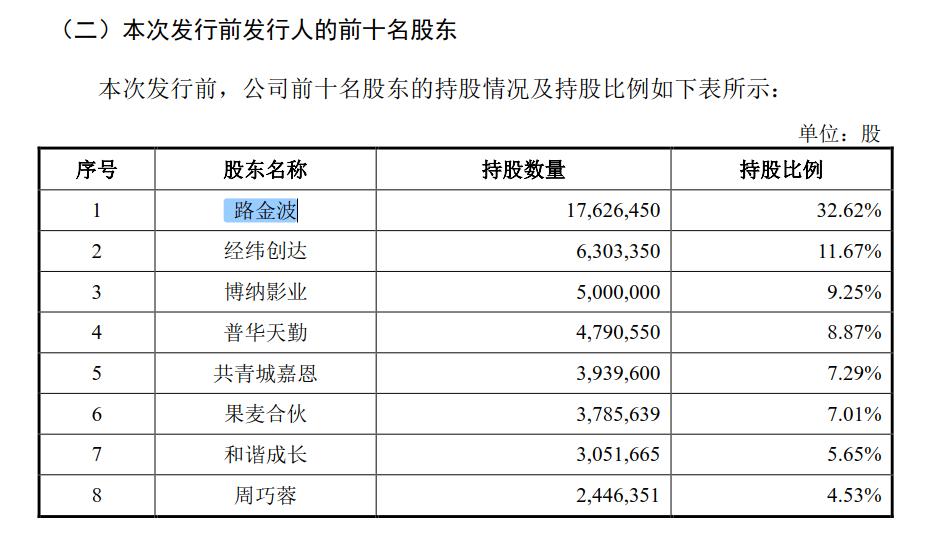 随后的2002年路金波封笔转型为出版商人,真正开创了属于自己的事业。截至招股书公布之日,路金波直接持有果麦文化32.62%的股份,为公司的第一大股东和实际控制人。