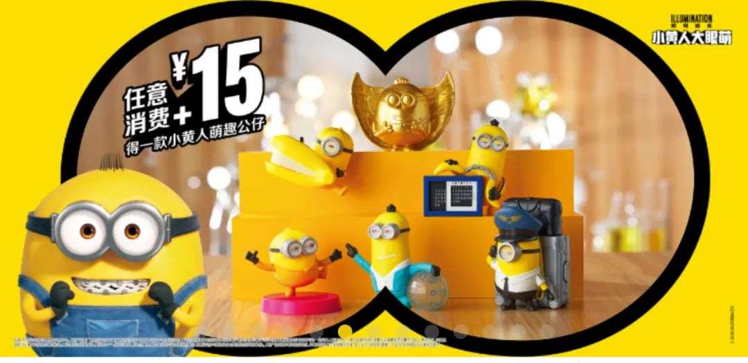 刚开始的时候,麦当劳宣称盲盒“只送不卖”,但显然没有人真的会去吃这么多儿童餐,随后麦当劳又推出,任意消费+15元可获得一个小黄人盲盒。