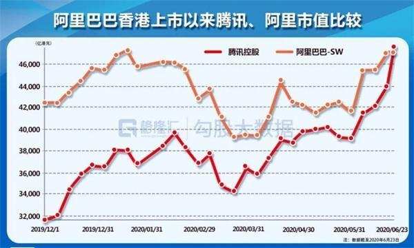 近两日腾讯与阿里两家公司市值轮番超越彼此。阿里巴巴(9988.HK)周一港股盘中市值突破5万亿港元,超越腾讯重回中国市值第一大公司。今日腾讯股价站上新高,再度超过阿里成为中国第一市值公司。