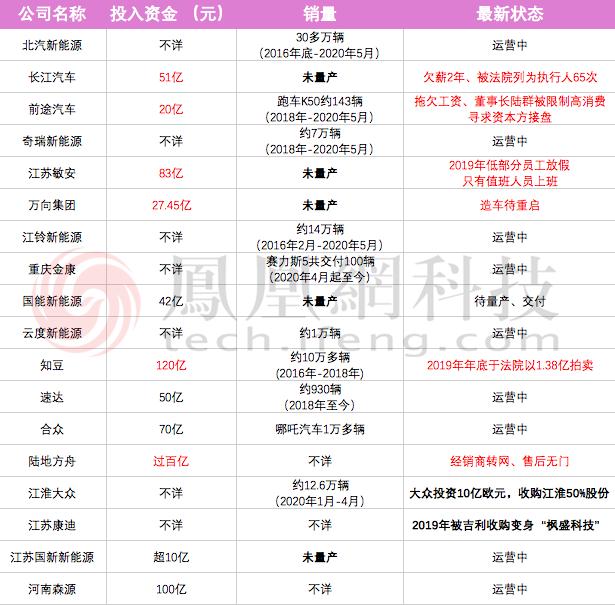 就连获得了发改委生产资质的18家厂商,目前至少有5家公司没能实现量产,多家公司在2018年后也陆续爆出欠薪裁员、被拍卖或收购。这些拿到资质的厂商还并非完全没有造车的经验,大多在传统汽车领域摸爬滚打多年,投入都上十几亿、甚至上百亿。