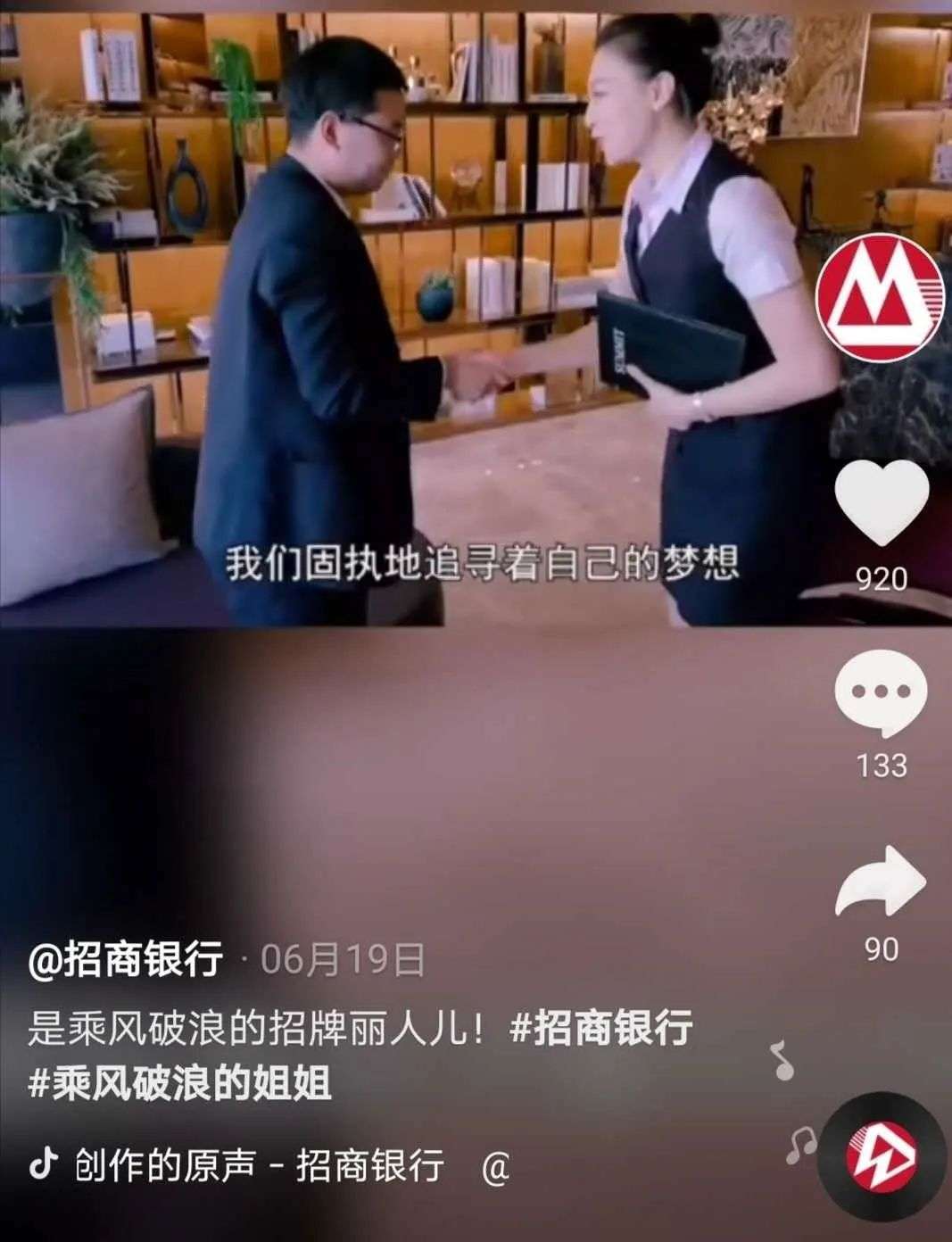 招商银行在抖音发布的“银行小姐姐的一天”短视频