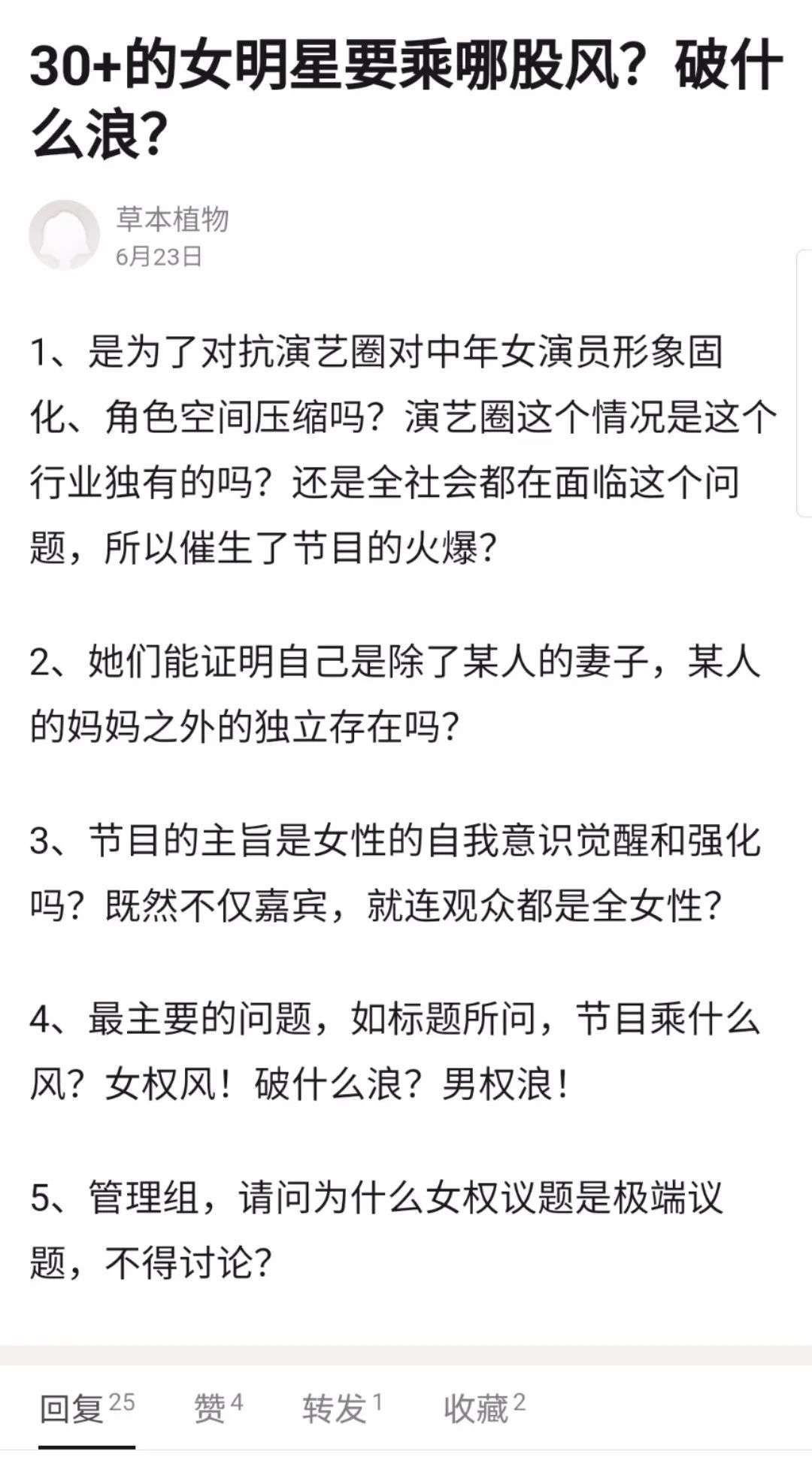 而在综艺《乘风破浪的姐姐》豆瓣小组中,一个相关的话题也曾一度被管理员删帖。