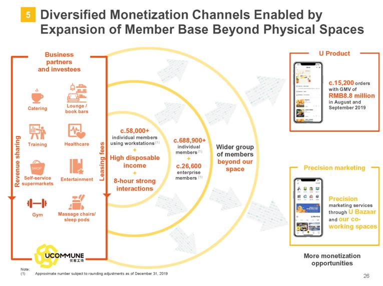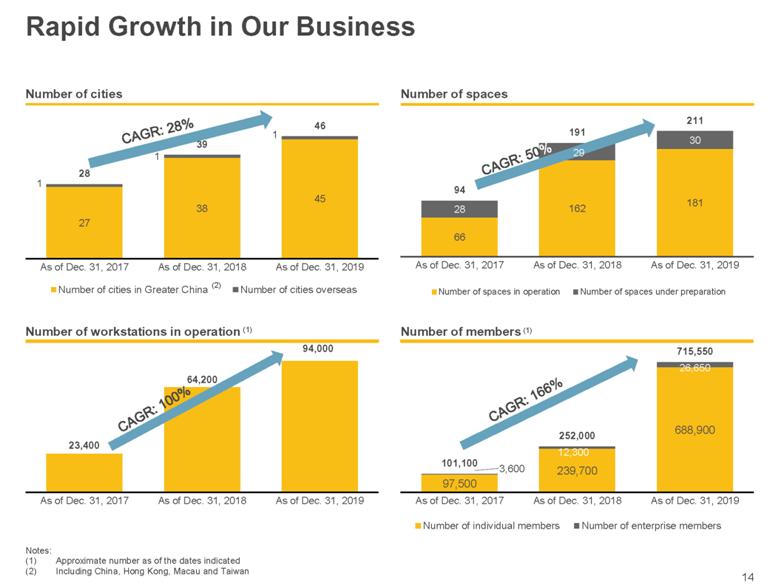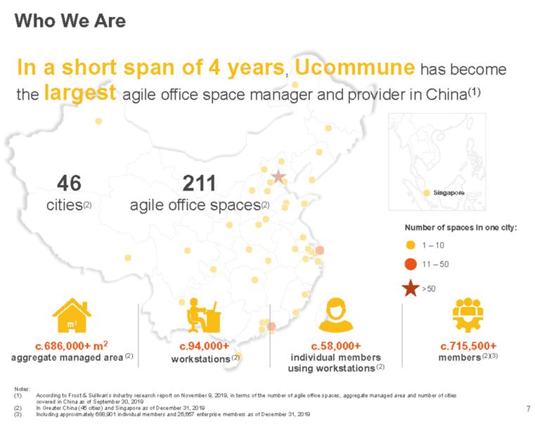 截至2019年12月31日,优客工场共覆盖中国及新加坡的46座城市,总计211个联合办公空间,入驻会员超过70万。