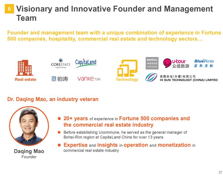 △ 6、优客工场创始人及管理团队将房地产行业和技术领域的经验结合在一起。其中,创始人毛大庆具有超过20年的财富500强及商业地产从业经验,其是商业地产运营和商业化方面的专家。