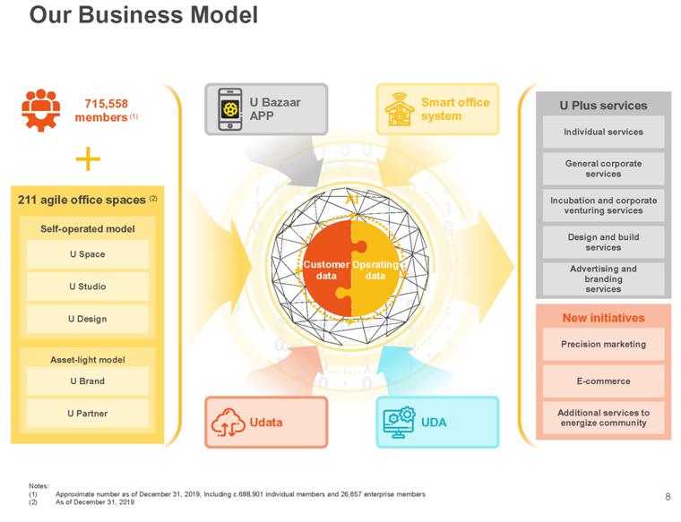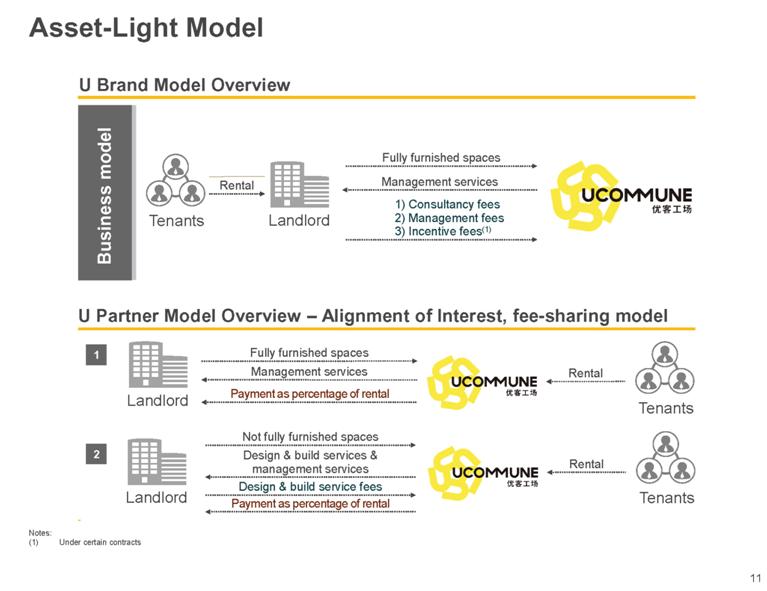 △ 轻资产运营方式指优客工场主要提供开发、管理运营服务为主,而业主本身则需要承担大部分资本来建设和推出新的办公空间,具体可分为以运营、设计施工服务输出为主的U Brand模式,以管理、系统输出为主的U Partner模式。