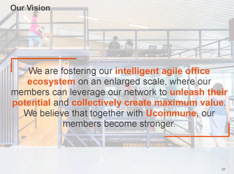 △ 优客工场的愿景:希望通过自己不断完善办公空间的生态,从而让入驻会员进一步释放潜力并创造最大价值。