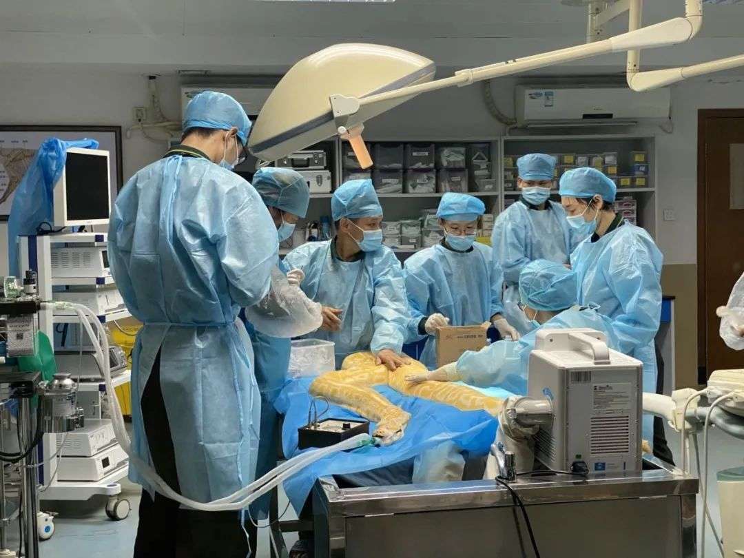 再比如,上个月,我在朋友圈中直播过黄金蟒的难产手术。