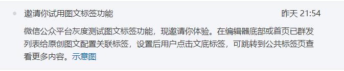 6月7日,我的公号后台收到一条官方消息,邀请试用图文标签功能。