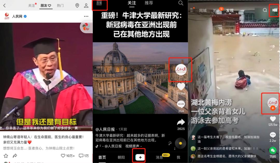我们简单对比下,新版视频号与抖音、快手的首屏体验。视频号除直播外,其他功能均已具备,但值得注意的,视频号首屏账号关注功能尚未开放,顶部“推荐”功能为“朋友❤”,而视频拍摄功能则隐藏在个人界面。