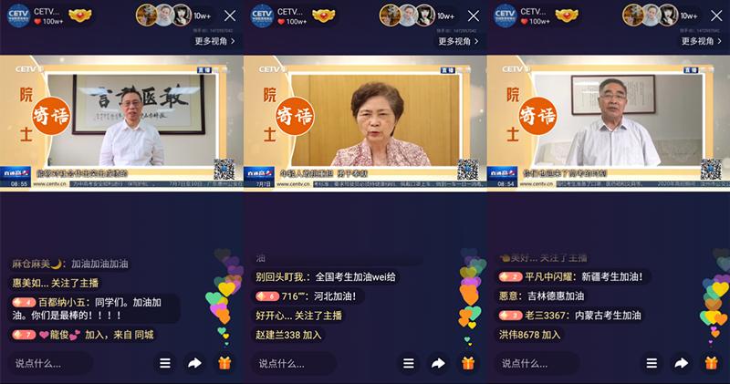 在此次的快手直播镜头中,不仅出现了在高考一线忙碌的公安民警、交警、医务工作者、志愿者的身影,还有众多准备进入考点的高考考生以及送考家长,更有钟南山、李兰娟、张伯礼三位院士为考生送上高考寄语。