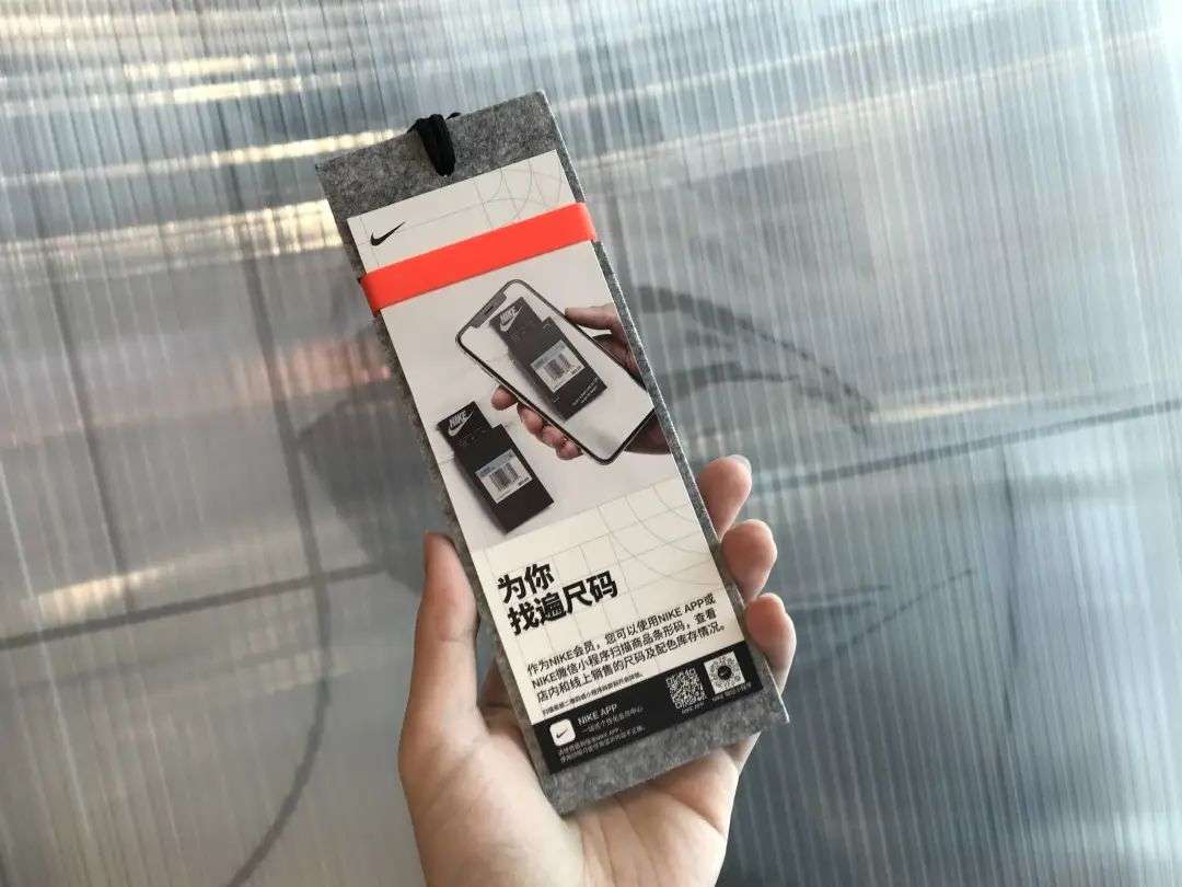 进去购物就更方便了。如果找不到自己要的尺码,商品旁现在都有一个条形码,用 Nike app 扫描,选择自己要的尺码,服务员就会帮你选好,放在你所在楼层的服务台。