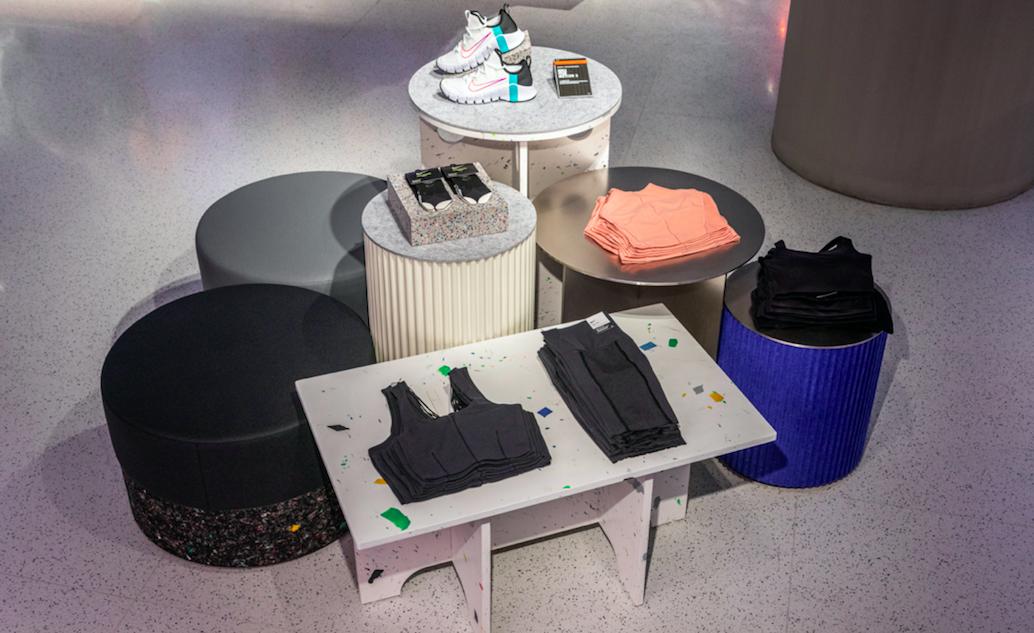 不仅如此,店内部分衣服也是由可持续材料制作,但是「传说」中由工厂车间「垃圾」制作的 Vapormax 运动鞋和 Space Hippie 系列鞋款,目前还没有看到。