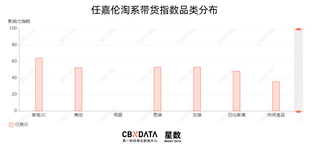 任嘉伦没有浪费在短时间内急剧凝聚的人气,趁势接下了Bio-E、汰渍、飞利浦、力士等多个品牌代言。在CBNData星数的品类带货榜单上面,任嘉伦也从未上榜状态跃至家电3C品类第28名,此外,在美妆、服装、日化家清及休闲食品方面都有了十足的带货长进。