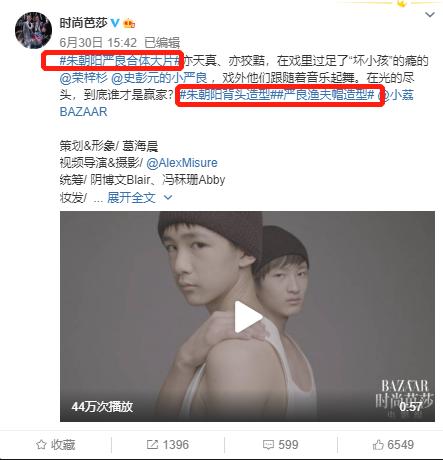 虽然三位小主演的面孔已经深入人心,他们也因此获得不少采访及杂志拍摄机会,但在观众的心中,他们依然被贴着角色标签,就连拍摄的杂志话题也是#朱朝阳严良合体大片#。