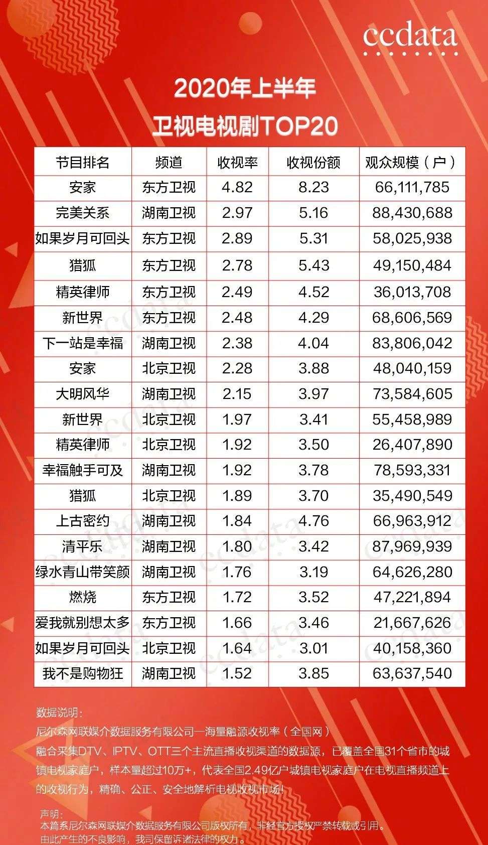 图片来源:尼尔森《2020年上半年卫视电视剧TOP20》