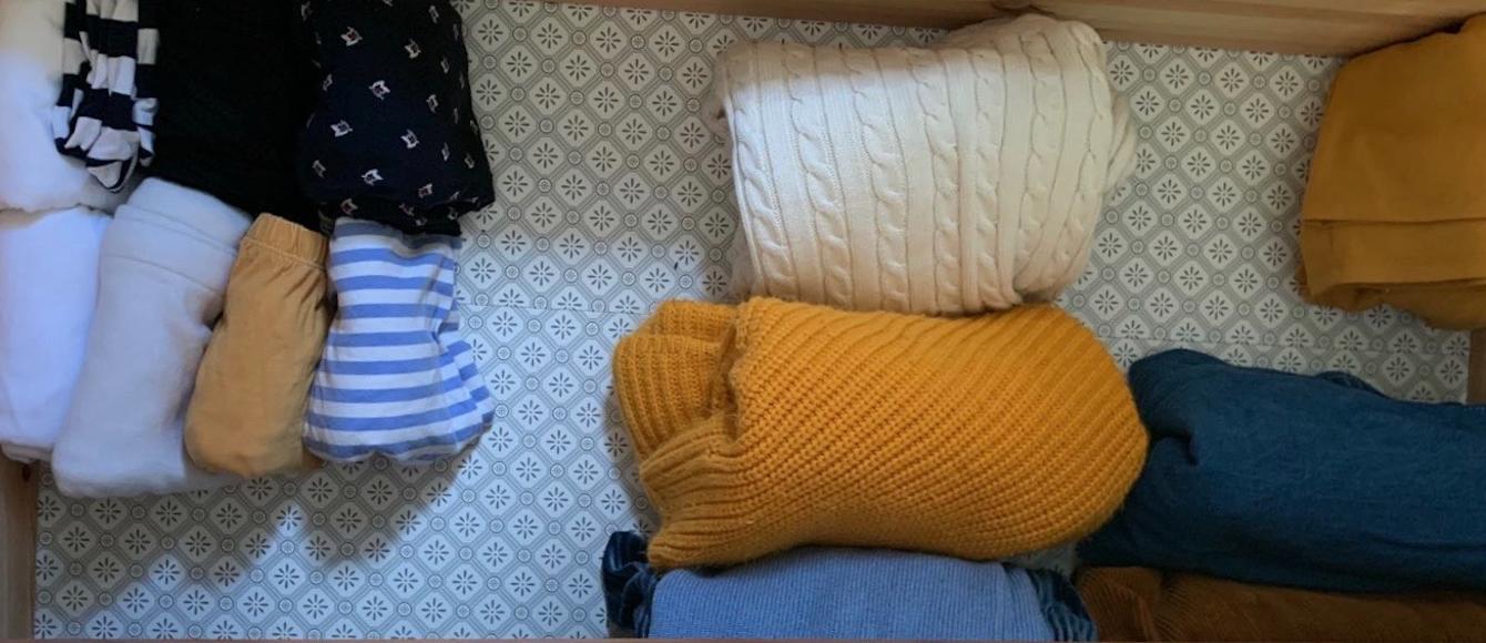 我初次尝试的把衣服直立整理的小成果,大大节省了空间,又一目了然方便挑选。