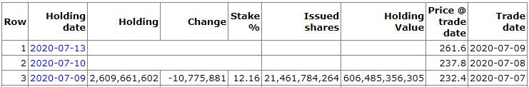 同样,阿里去年11月26日上市后,亦有41亿股阿里股份转仓至香港,持股占比达到19.22%,上市后,该席位持股量不断减少。