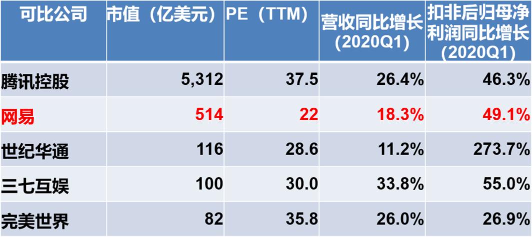 以网易为例,2020Q1扣非后归母净利润同比增长49.1%,腾讯则是46.3%,然而从网易回归前的估值水平上看,网易在美估值仅有22倍,腾讯是接近40倍,网易作为中国第二大的移动游戏公司,也是全球第二大移动游戏公司,在大多数中国投资人眼里,这样的估值显然是不被接受的。