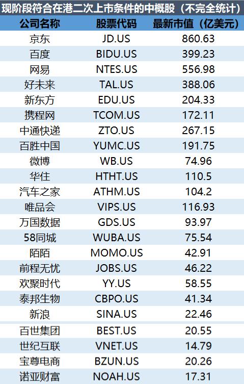 根据港交所的规定,二次上市公司必须在包括英美市场上市并至少保持两年良好合规记录,其次市值不低于400亿港元,或市值不少于100亿港元但最近一年收益至少10亿港元。