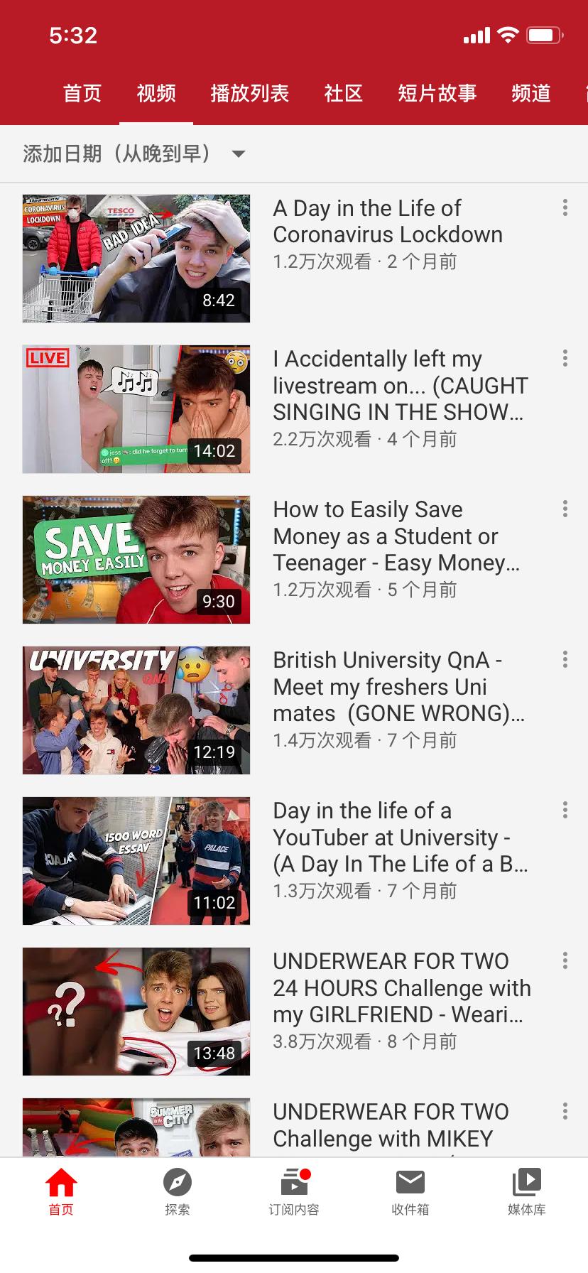另外我也会看一些内容和我很相似的在YouTube上认识的朋友的视频,看一下他们的近况以及视频情况,掌握时下的趋势。最近我在看一个环游整个英国的博主,有看20多集。我看的类型很随机,还有纪录片、有趣的事实等等类型的视频。所以我会说我在YouTube上看的视频类型很杂,也有很多种形式。