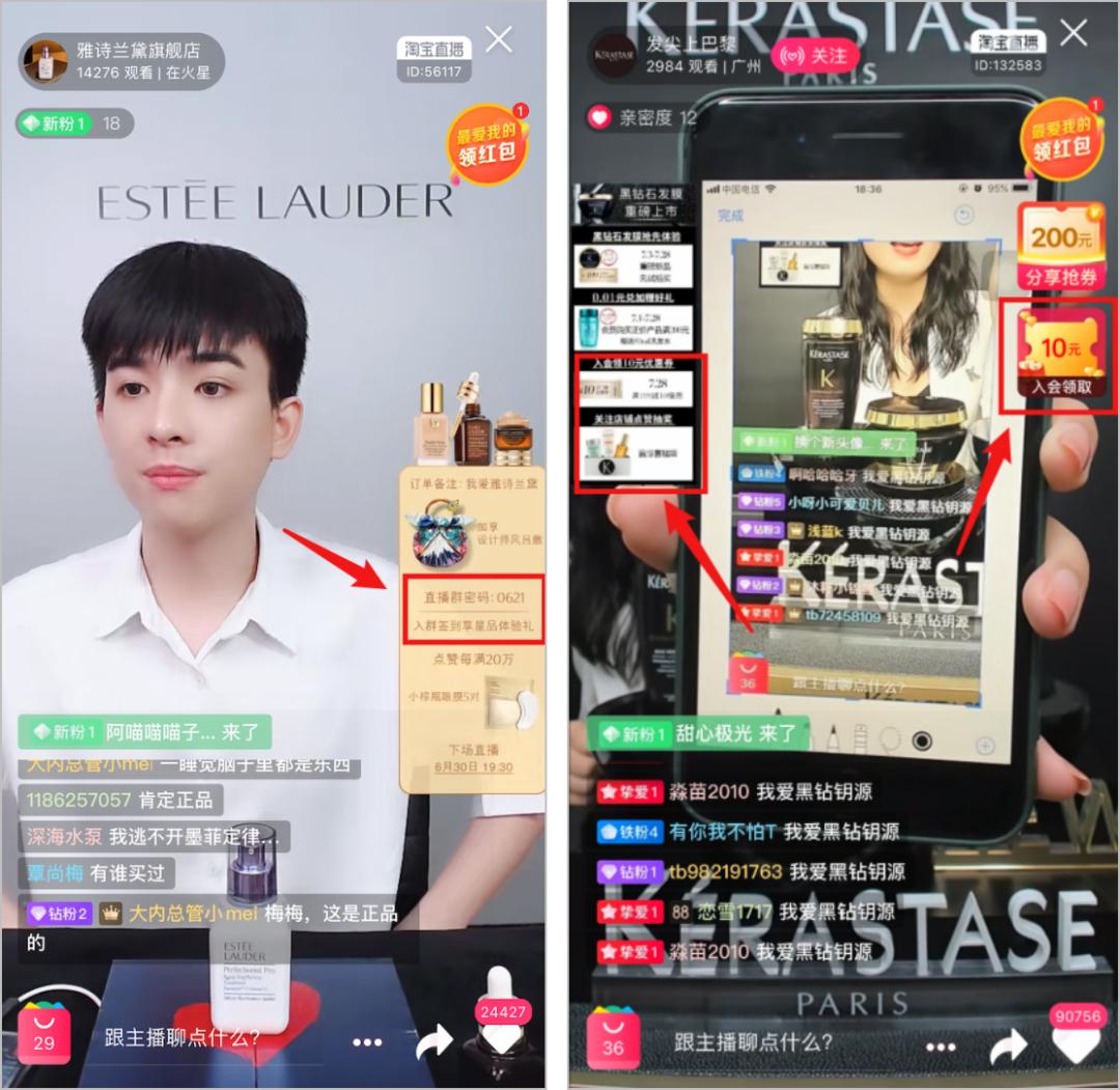 为了保证以上这些渠道的流量,很多商家在直播的过程中,会引导观众关注店铺,并给到福利刺激加入直播粉丝群,或者加入会员。