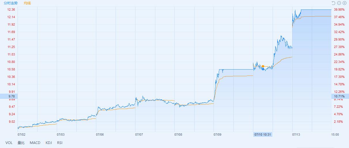 值得注意的是,苏宁易购在近三个交易日两度涨停。继7月9日盘中涨停后,7月13日,苏宁易购再度盘中涨停,报12.36元,上涨9.96%,其7月累计涨幅已达42%。