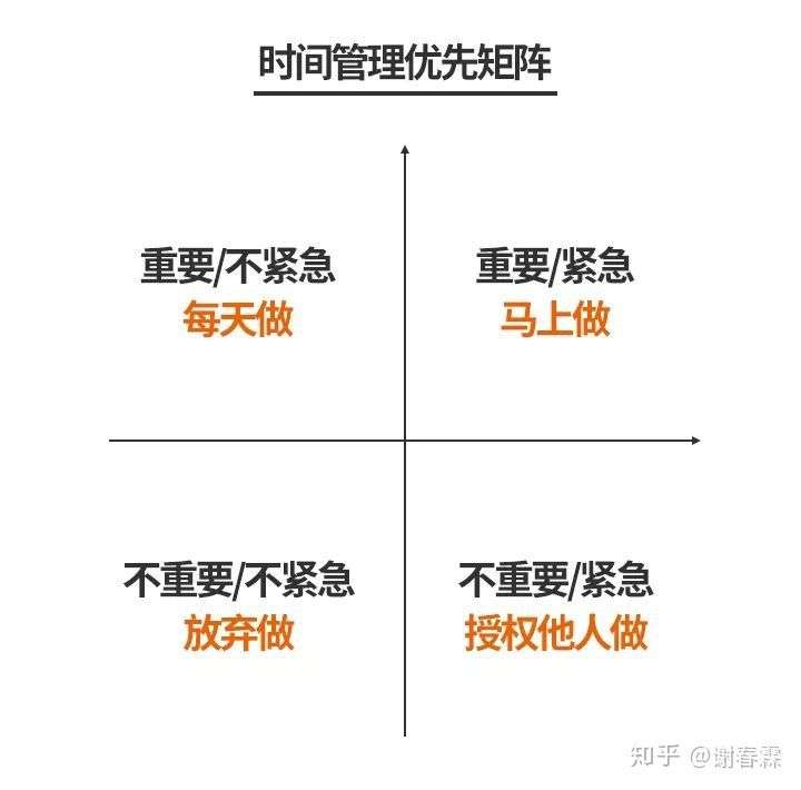 好,知道了什么事情重要,你就可以应用“时间管理优先矩阵”来精简并管理自己的任务,把每天的注意力都聚焦在这些最重要的事情上了。