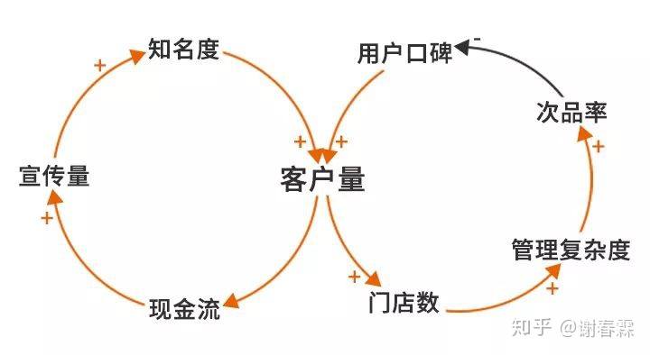 比如刚才锤子奶茶店系统图里的风险因素就是“次品率”,次品率越高,用户口碑就越差,客户就会流失的越多。