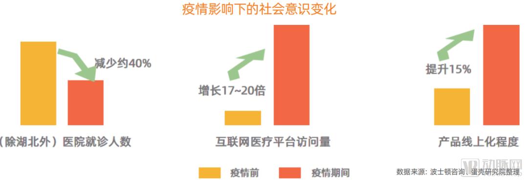 同时,普通病人为避免风险也选择少去或尽量不去医院。这将许多无法出门或不愿意在疫情期间去医院就医的患者推向了线上就医。国家卫健委的数据显示,今年2月,全国(除湖北外)医院就诊人数减少约40%。
