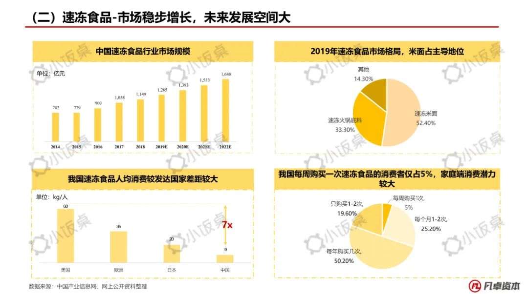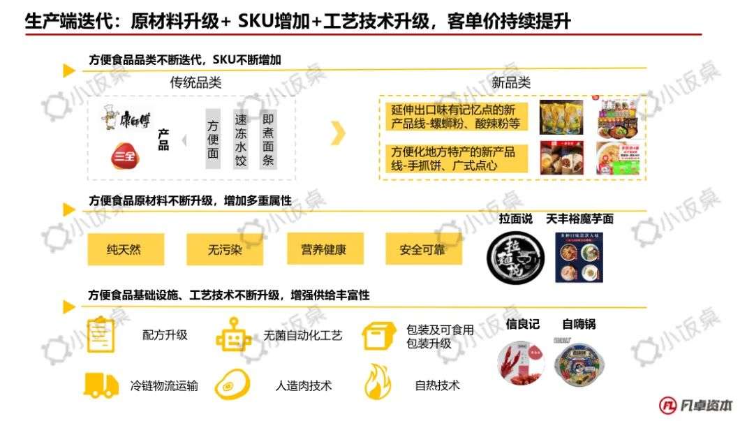 1. 方便粉面高端市场、速冻火锅料和预制菜市场潜力大,新品牌通过创新打造新爆品是核心思路。